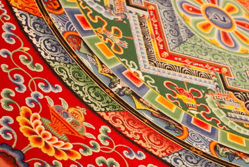 The mandala is a profound, universal symbol that translates literally to “center and its surroundings” and is a physical representation of our interdependence with the world around us. Mandalas are found in many forms, but always include a circle, a central point, and some form of symmetry. They can be created in sand, on paper or cloth, or built as 3-dimensional models or buildings. The vivid painted mandalas of Tibet are the most widely known.