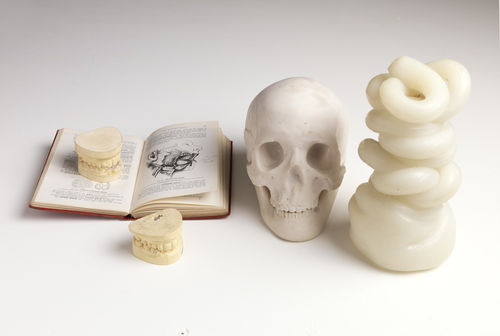 In this exhibition, Whiteread's drawings will be accompanied by key examples of her sculptural work. Among the special features of the installation is a vitrine of objects selected by Whiteread. Works by the artist are juxtaposed with items gathered from various sources, such as attics and thrift stores, or found on walks and travels. Fossils, a dental mold, a tin votive, buttons and shoe lasts are just some of the objects that belong to Whiteread's collection of captured memories, and thus to her extended notion of drawing.
