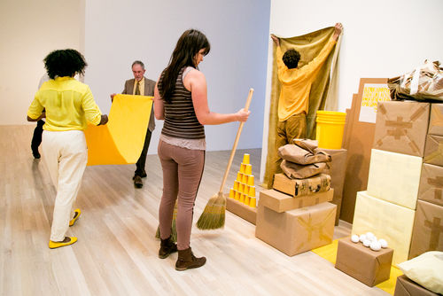 Part of the curatorial department, the Public Engagement program collaborates with artists to develop and present works that create an exchange with the institution and with visitors. Enacted both inside and outside the galleries, Public Engagement projects range from re-envisioned security guard uniforms to library and orchestra residencies. The Hammer Museum's Public Engagement program is supported, in part, by the Los Angeles County Board of Supervisors through the Los Angeles County Arts Commission.