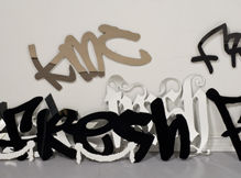 During his residency, he met with a number of established artists, curators, and scholars and attended a series of events, including the UCLA Department of Ethnomusicology’s “Rap Sessions: A Community Dialogue on Race and Hip-Hop.” He met with curator John Geresi, who shares his interest in the intersection of design and art, and with Jeff Chang, editor of the anthology Total Chaos: The Art and Aesthetics of Hip-Hop.