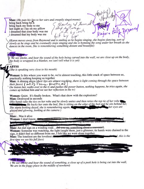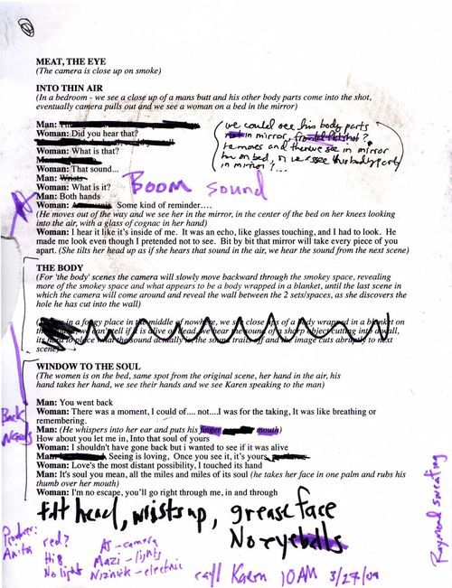 Ruilova describes the process of working with these Los Angeles icons as highly collaborative, with the script molding itself to the dynamism of these two personalities and their interactions. The script, with multiple rewrites and markups from both actors, can be seen in the above slideshow. She says, “I really had no idea what to expect, and I think that was good for me.” Ruilova also worked with a professional film crew for the first time, and that challenging experience of collaborating on a much larger scale pushed the work to grow in new ways.