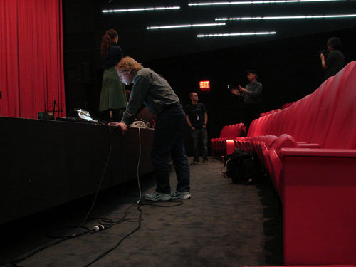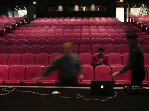 To realize this technically complicated and subtle work, the group of collaborators worked closely with the Hammer audiovisual staff over a series of intense rehearsals in the Wilder Theater. Brookshire, Guthrie, Pisaro, and Streb also conducted a workshop at the Hammer on the processes of improvisation and collaboration for students and postgraduates, discussing how they blended their unique but varied skills into a fully realized and holistic work.