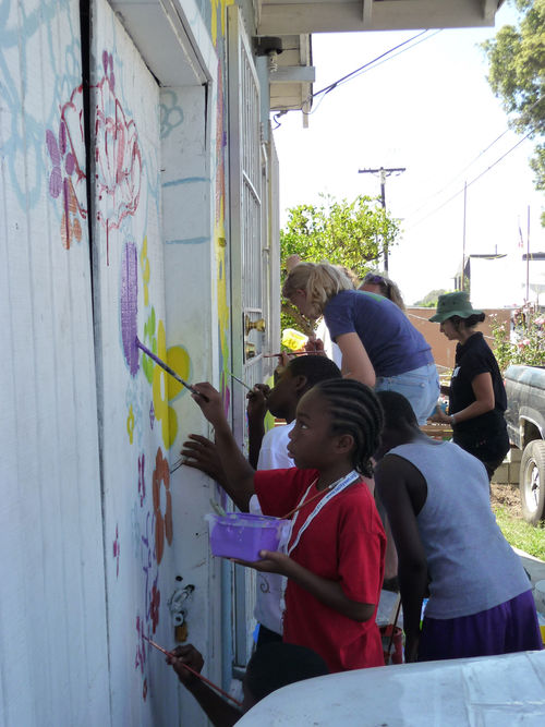 Arceneaux’s residency, which spanned September 2008 to June 2009, marks an innovative approach to the museum residency, reflecting the Hammer’s openness to risky and process-based nontraditional art practices. Rather than initiating a “parachuting approach” to community outreach by pairing an outside artist with an underserved community for a short-term project (that may or may not address the needs of that community), the Hammer partnered with an artist already engaged in rigorous community-based work. Because of the museum’s relationship with UCLA, a wide range of students, from MFA students to undergraduates in art and art history, have participated in volunteer days and special internships on the project. The Hammer has expanded on this interest in rigorous community art practice and a larger critical dialogue about social practice through the workshop “Art and Community Engagement,” in which the Watts House Project was a featured case study.