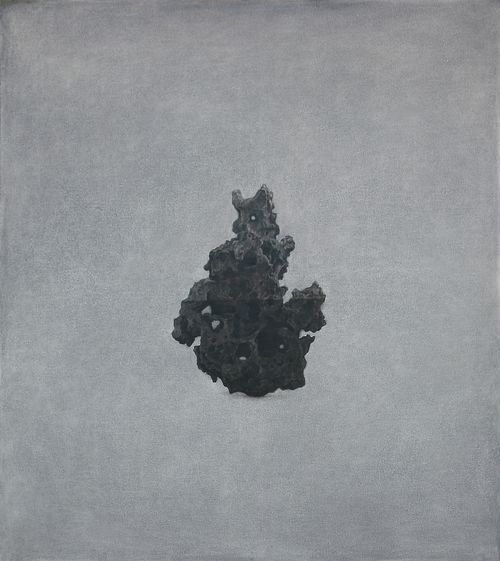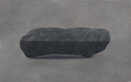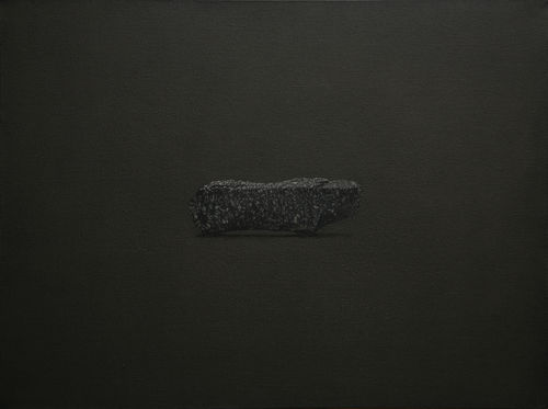 But, Wu suspends them in time by dipping them halfway into water and painting them with their watermarks in place forever. Using the rich medium of oil paint he imbues these stones with a mysterious life beyond our experience and understanding quite like the life scholar rocks have had for Chinese culture for 2000 years, or meteorites have for todays scientists and the Public. Scholar rocks were appreciated for their aesthetic beauty, and used as a focal point in contemplating spiritual or philosophical principles, and for meditation prior to writing poems or painting. Wu’s common stones have a similar ancient but also futuristic alluring ambience.