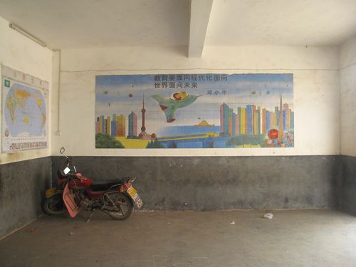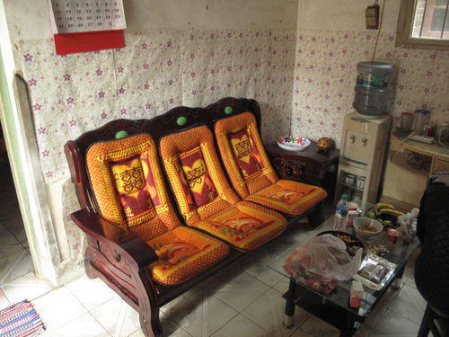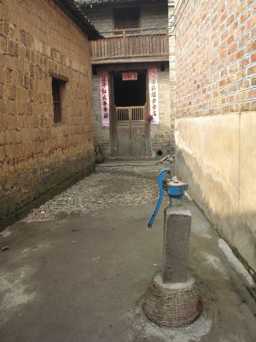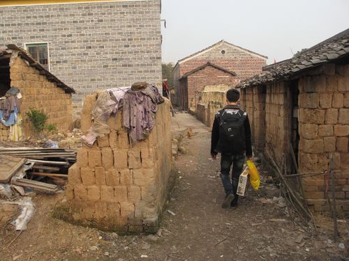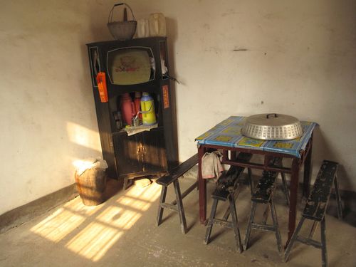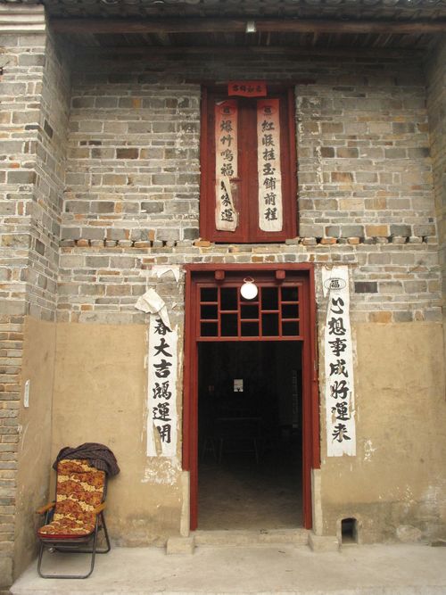 We walked through the busy village, across misty fields, down dirt roads, into mazes of buildings to Xiangying’s home. Along the way I noticed mirrors hanging in many of the windows and above the doorways, some even had old rusty knives hanging beside the mirrors. Xiangying told me that the people have done this for years to keep the evil spirits out.