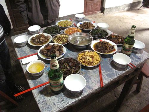 A meal was waiting for us when we reached his home. We sat down to eat and drink as everyone else came and went eating and chatting as they please: grandmothers, children, aunts, friends, fathers, dogs, and an occasional chicken. At this time of year the ritual is to go from family house to house to greet and drink and eat again and again. All extended family members are called brothers and sisters or aunts and uncles. It is a beautiful and tight knit family community. I was the first foreigner to visit Xiangying’s home (and the first one in his entire village), and even though they weren’t sure how to act and what to say to me, I was treated as family. It was a special occasion for all of us, especially for me.