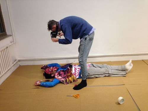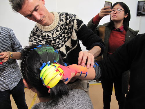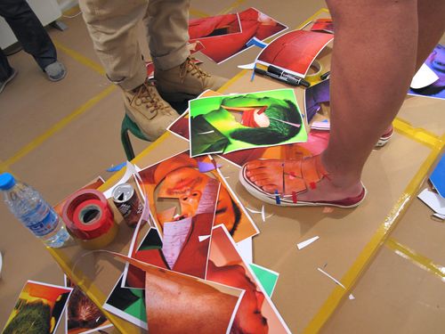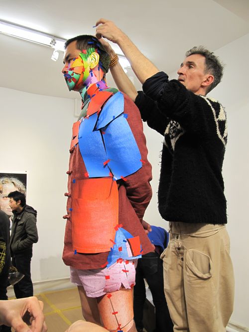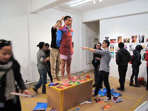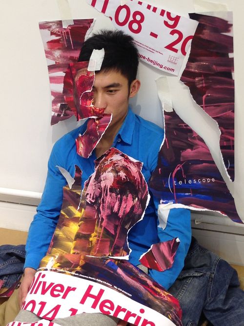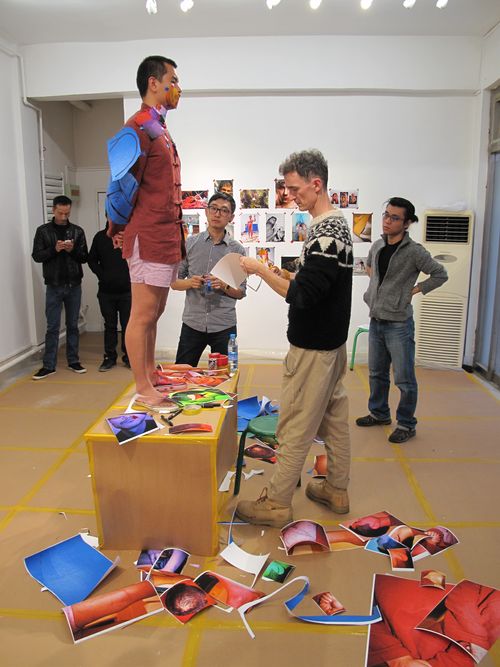 Herring has made Telescope his base of operations where he is slowly building an exhibition through numerous performance works with varied strangers. For his first performance he photographed a few students from head to toe, printed out the body parts, cut out and reassembled these pieces back onto the models during a day long public exercise entitled Areas for Action, Beijing: Photo Cut Out. The photos posted are of the opening to his Telescope residency. Every week Herring will continue the previous performances as he transitions into new media, tools, people, and performances. Stay tuned for more coverage…