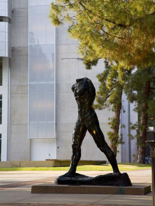 Firmly committed to the idea that works of art are most thoroughly enjoyed as part of everyday life, the Sculpture Garden was dedicated in 1967 by UCLA’s third chancellor, Franklin D. Murphy. Murphy worked with UCLA’s supervising architect, Ralph D. Cornell, to create an edifying environment that fosters the learning process. As a result of their vision, the Sculpture Garden transformed an area of north campus into a park-like setting for some of the finest sculpture of the nineteenth and twentieth centuries. The garden features the distinctive flora of Southern California amidst the pleasant informality of a modern American campus, rolling across three distinctive areas: a formal plaza paved in brick, a walkway formed by a triple row of South African coral trees, and an informal sloping lawn cut with curving textured pathways.