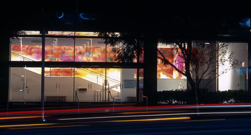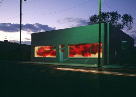 Since every one of Grosse’s paintings is a unique event that is influenced by the architectural, geographical, and social situation, each project is a discovery not only for the viewer but also for the artist herself. In Marfa, Texas, where she was invited by the Chinati Foundation, which encourages site-specific works, Grosse painted the interior of a low, freestanding building with a powerful high-contrast composition of mainly reds and greens. Although it was entirely abstract, one could see the piece as being inspired by the vast and tumultuous west Texas sky. Inside, the visitor would be enveloped by the painted weather, so to speak; looking through the windows from the street, however, felt like watching a thunderstorm trapped in a cage. At night, when the building was illuminated, the work appeared particularly dramatic, even cinematic. Also, with the fast-moving clouds in the real background, the painting’s own impermanence as an image became all the more evident. This is a direction that Grosse has consciously taken. Most of her recent paintings are not meant to last, and there is nothing precious or monumental about them. They are temporary events, and as such they are much closer to contemporary pop culture than to traditional painting. Like movies, many of her works have a limited run. They will be painted over after being on view; they will vanish like graffiti or be removed to make room for the next billboard.