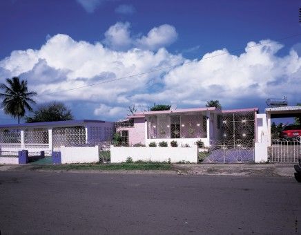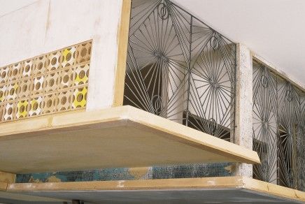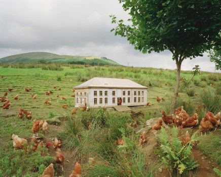 References to music, architecture, social history, and philosophy abound in the work of British artist Simon Starling. Taking the utopian ideal of Modernism as his point of reference, Starling will present Inverted Retrograde Theme, USA (House for a Songbird), 2002 - complete with birds. In the installation in the Hammer's Lobby Gallery, two scale models by Austrian architect Simon Schmiderer of a Puerto Rican housing project dating from the 1960s double as birdcages. They sit atop tree trunks that stretch up from the floor below. Art critic Massimilano Gioni notes that "by replicating the elaborate pattern of steel gates and fences, and by trapping a couple of songbirds in one of his miniaturized houses, Starling evokes the contradictions that disarm and immobilize any version of utopian thought when faced with the unpredictable chaos of life."