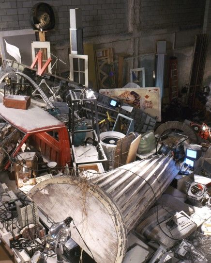Unholy messes make many people nervous, but Tomoko Takahashi feels right at home in them. A pack rat who thinks big, the Japanese-born, London-based artist is known for making labyrinthine site-specific installations brimming with all manner of rubbish, culled mostly from curbsides, dumpsters, Recycler ads, and garage sales. To enter a Takahashi installation is to step into a topsy-turvy universe where objects seem to have taken on lives of their own. Clocks run on their time, not ours; precariously balanced object clusters seem to defy the laws of gravity, rivers of electrical wire snake their way through mountains of technological detritus, and translucent blue light streams from the unblinking eyes of television screens. To Angelenos in particular, Takahashi’s works may bring to mind the tumultuous aftereffects of a major earthquake, but in fact each of her installations is a painstakingly choreographed arrangement of interconnected, artfully chaotic tableaux. As such, her installations have more in common with stage sets than they do with disaster zones.