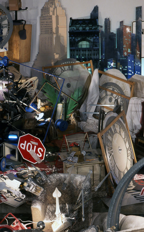 Tomoko Takahashi's chaotic installations imbue ordinary objects with renewed life. Consisting of “found objects” and rubbish that the artist arranges in sprawling installations, Takahashi's displays may at first appear to be random piles of discarded refuse. Upon closer inspection, however, a sense of underlying order is revealed. Resisting clear-cut narrative “readings” Takahashi's installations are associative and abstract in nature, highly schematic yet also deeply intuitive.