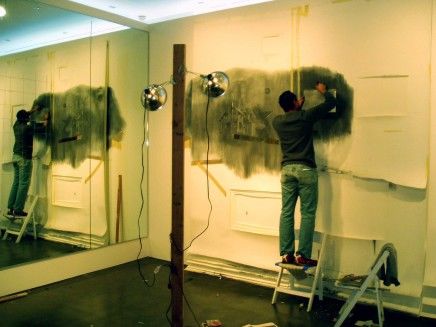 The presence of mirrors, new to this version of Drawings of Removal, is both an evocation of mirrored walls in the artist’s own childhood home, and a new and continuing motif in Arceneaux’s work. Echoing the dislocation of memory, mirror images are as close as we can come to seeing ourselves, yet what we see is never the “real” thing. Placed opposite each other, mirrors are also an intimation of the infinite—the flow of time and the unending mirroring of memory back upon itself.