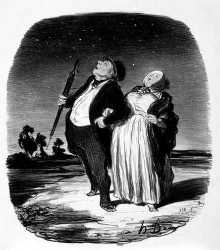Honoré Daumier’s (1808-1879) satirical commentary sometimes extended beyond the confines of the earthly world to the skies and to celestial bodies. Scientists and the general public were fascinated with cosmic occurrences during the nineteenth century. Stargazing became a popular evening activity among the bourgeoisie and some were lucky enough to journey closer to the heavens in newly-invented hot air balloons. Despite the increased scientific knowledge, superstitions and myths about the moon, sun, eclipses, and comets remained prevalent in the nineteenth century. For example, Parisians braced themselves for the end of the world with the arrival of Brorson’s Comet in June 1857. Drawn from the Armand Hammer Daumier and Contemporaries Collection, this exhibition takes a humorous and intriguing look at the wonders of the skies.