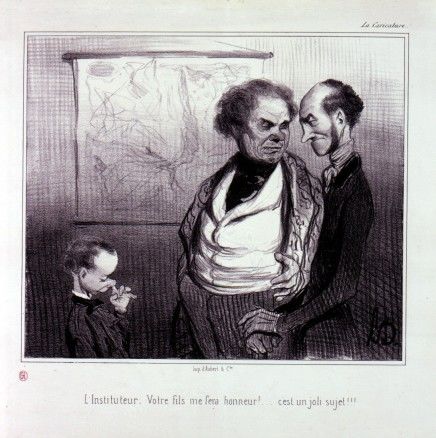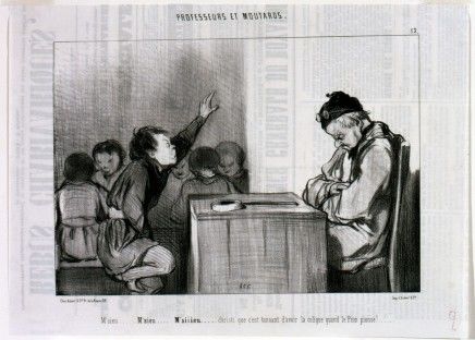 Education was a hot topic in nineteeth-century France—just as it is today in the United States. Politicians, clerics, and the general public debated the pros and cons of a state-run school system, the fraud-ridden private schools, and different forms of punishment. Honoré Daumier (1808-79) highlighted the world of education in a number of lithographs, including his series Professeurs et Moutards (Professors and Kids). With his inimitable artistic style and sense of humor, Daumier addressed these debates along with the familiar dynamics of teacher/student relationships. Drawn from the Armand Hammer Daumier and Contemporaries Collection, this exhibition takes a light-hearted look at students and professors and may, perhaps, take us all back to our own school days.