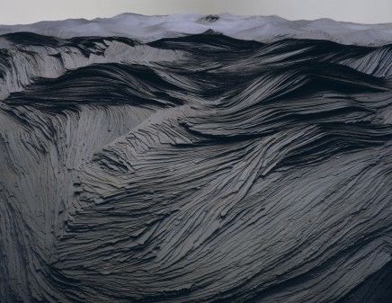 Who knew clear plastic drinking straws had such vaporous and undulating aspirations? Haze (2003) permitted their collective confession when a mega-conference of nearly two million of them was convened by Donovan at Ace Gallery New York last year. Forming craggy peaks reaching as high as thirteen feet, they were stacked in a perpendicular orientation along the length of an entire wall, resulting in a buttressed vertical plane with dense atmospheric qualities from afar given that both light and air permeated the entire structure. In relation to the wall, Haze acted as a thick scrim gone wavily slack as straws pushed flush to the surface created stabilizing recessions for the hills of others projecting further into the room. Gallery-goers unconsciously performed dances of homage to a marvelous visual oscillation that corresponded to each of their parallel movements as pixilated views of the wall appeared and receded. It was a fugitive effect that could also be magnified or minimized according to one’s distance from the facade.