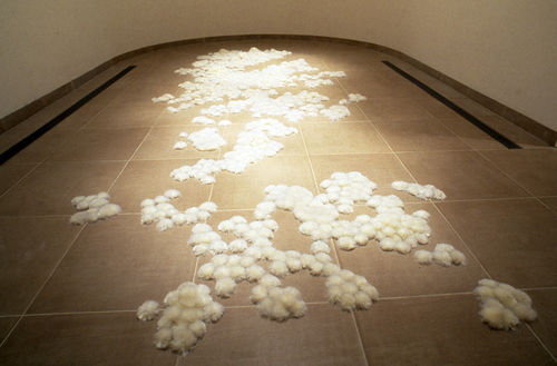 Tara Donovan was born in 1969 and lives in New York City. She received her M.F.A. from Virginia Commonwealth University in 1999. Recently she has had solo exhibitions at Ace Gallery, New York and Los Angeles; Museum of Contemporary Art, Cleveland; Akira Ikeda Gallery, Berlin; and the Corcoran College of Art and Design’s Hemicycle Gallery, Washington, D.C. Group exhibition venues include Cooper Union, New York; Mead Art Museum, Amherst, Massachusets; and Weatherspoon Art Gallery, University of North Carolina, Greensboro. In addition, her work was included in the 2000 Whitney Biennial. Articles on Donovan’s work have appeared most recently in the Village Voice, the New York Times, Artforum, and W.