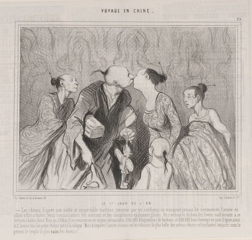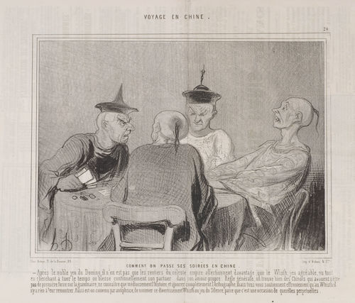 Honoré Daumier traveled to China numerous times in his career—at least figuratively. Among his lithographs on the subject of China are two series Voyage en Chine [Voyage in China] (1843-45) and En Chine [In China] (1858-60). In these images, Daumier played with familiar nineteenth-century visual stereotypes that the French held about the Chinese and their culture. At the same time, many of the activities satirized by Daumier are typically French. Thus, in many respects, these prints convey more about nineteenth-century France than about China. This exhibition will explore Daumier’s particular view of “East Meets West” through a selection of works from the Armand Hammer Daumier and Contemporaries Collection.
