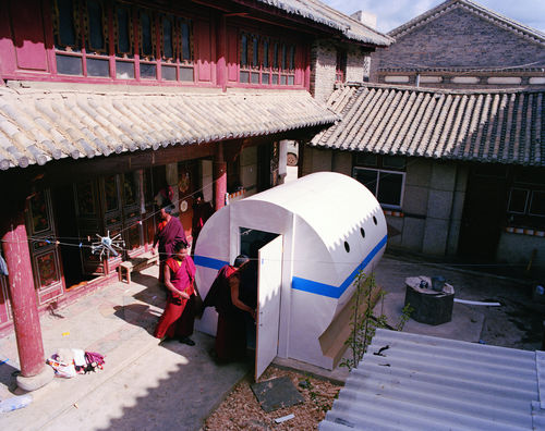Patty Chang’s video installation examines the idea of Shangri-La, the mythical hamlet of James Hilton’s 1933 novel, Lost Horizon. The novel and the subsequent film by Frank Capra (1937) propelled the notion of Shangri-La into the collective cultural vocabulary. In 1997, a rural farming town in South Central China near the Tibetan border began to declare itself the place upon which Hilton’s Shangri-La was based. Subsequently a dozen other towns in the area claimed that they were the real Heaven-On-Earth, resulting in a relentless marketing battle until the Chinese government intervened by officially naming one town Shangri-La. Chang’s Shangri-La is about the reality and fiction inherent in the idea of a place that exists in both real and mythical incarnations. Her work explores the idea of making a real journey to an imaginary place.