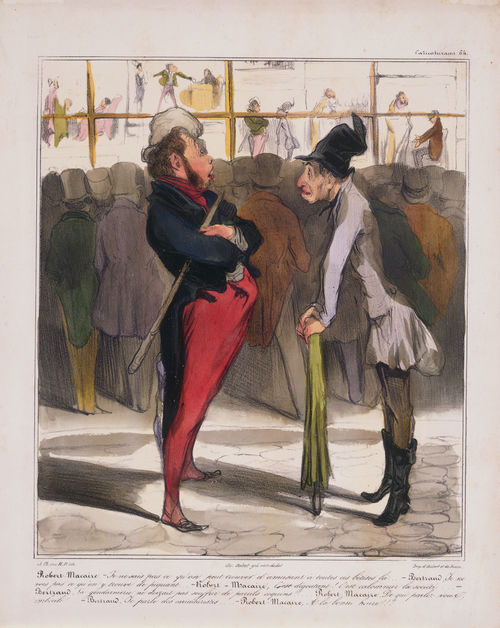 Robert Macaire: A Chameleon and a Critic celebrates Honoré Daumier's most popular fictional character, Robert Macaire, a smooth talking, plump-bellied, pseudo-stylish conman who appeared in over 140 of Daumier's caricatures in the 1830s and '40s. Considered to be a precursor to the modern-day comic strip, each new scenario presents Macaire and his sidekick Bertrand taking on a different role in order to confuse their victims, to criticize French society, and to amuse the reader.