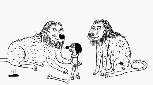 David Shrigley & Chris Shepherd's Who I Am and What I Want brings us the daily life of the character Pete, who has chosen to leave "polite society" and live in the woods. Pete is determinedly antisocial—in the sense that his goal seems to be to decivilize himself completely and live a life of total freedom (to do whatever he wants). He is a walking untamed ego but still somewhat self-aware. He relishes introducing himself as part of the wilderness, as a purely natural being—"My name is mushroom, my name is toadstool, my name is muck"—and it helps that he, like the mushrooms around him, is just a line drawing. He admits to doing terrible things to small children, eating live animals, and abandoning all responsibility, though without guilt or shame.