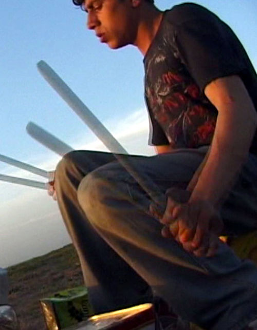 The Turkish artist Fikret Atay makes videos that offer short vignettes of life in Batman, a Kurdish city near the border between Turkey and Iraq. Using a hand-held camera and natural lighting, Atay films young local residents as they perform traditional dances, beat makeshift drums, and play war games. His simple, unaffected style lends an apparently straightforward authenticity to the images, yet the meanings of the performers' actions remain mysterious to viewers unfamiliar with the local culture. Despite the difficulties of filming in the highly charged political atmosphere of Batman, Atay's insistence on the specificity of place gives the work a distinctive presence and, despite an occasional hint of danger, the sense of continuity of community.