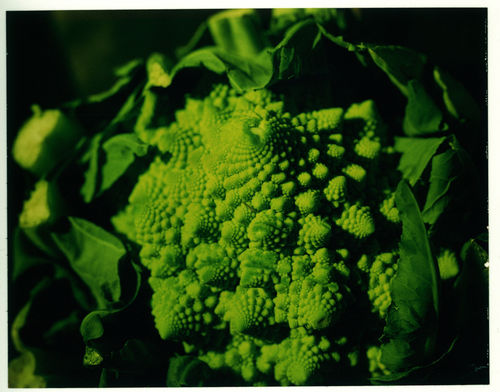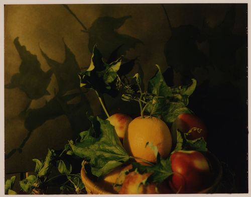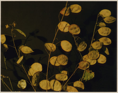 Miranda Lichtenstein's Polaroid photographs capture moments of transient, dark beauty. Taking her cues from early plant photography, the gardens of Giverny, and 18th-century paintings by Chardin, she bathes the living matter in a wash of artificial golden light. Making use of the most traditional elements of the still life-flowers, plants, fruits, and vegetables-she imbues them with a disquieting quality. This is produced, in part, by the painted backdrops in front of which she places her subjects. Shadowy, slightly misaligned, these backgrounds subtly destabilize the relatively traditional still-life format.