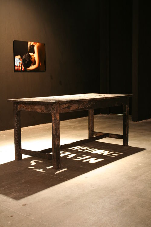 Upson found some personal items that the guy had apparently left behind. She took on the task of researching him and gave him a multidimensional life while merging his world with her own. She destroyed any notion of separation between herself, the artist, and her “unsub” (unknown subject). Digging into his past, searching for answers and leads into who he was and why he did the things he did, while at the same time creating fantasy and conjecture, she evolved from reflective artist (she was trained as a painter) into private investigator, and eventually all objectivity disintegrated. He became her obsession. Her lover. Her nemesis. Her muse. Her father. This was not even about finding out who Larry was anymore. She had crossed the line and blindly leapt into an alternate world. As she explains it, “The objective reality of the man I construct collapses into the subjective fiction I create, until they merge and I am more him than he is.”1