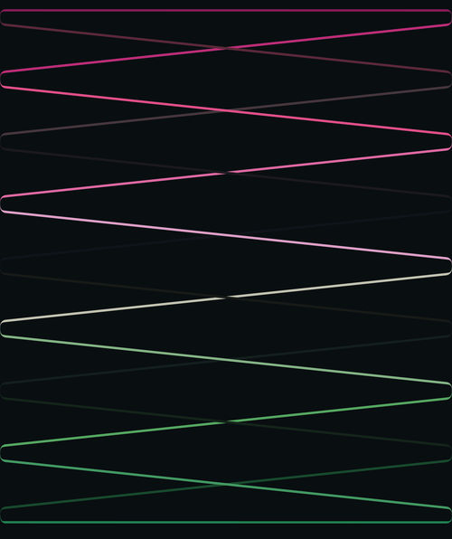 Terry Haggerty’s vibrant wall paintings conjure nostalgic associations from the mustard yellow and avocado decor of the 1960s and 1970s, to optical art, to the precise lines of sugar icing on pastries. He combines humorous and historical references to form abstract compositions that electrify and manipulate the space around them. Haggerty applies multiple coats of paint to create sleek surfaces and utilizes simple lines which, when viewed together, create masterful geometries that seem to blend and curve each wall.