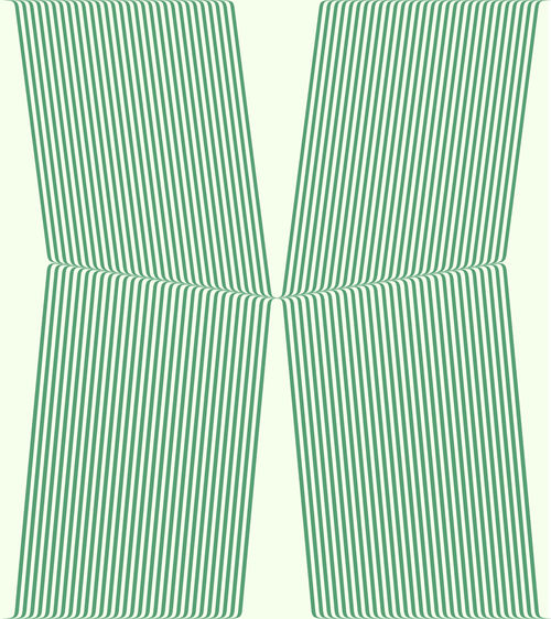 British-born artist Terry Haggerty, who currently lives and works in New York, has become known in recent years for paintings that express the formalist vocabulary of abstraction in a new way. The principle of serial composition can be discerned in Haggerty’s work: light-colored stripes alternate with darker ones to form regular, often horizontal arrangements, which also have a patternlike quality due to their dense structure. This would not seem particularly remarkable were it not for the fact that Haggerty breaks this linear formation at the edges of the painting—and occasionally also at the symmetrical center of the composition—by bending the lines in a different direction as they approach the boundaries of the painting support. This has a crucial effect on the overall pictorial appearance, in that it immediately transforms the planimetric structure of the painted motif into an illusory perception of three-dimensionality within the image. The surface seems to continue beyond the boundaries of the picture support, with the result that the two-dimensional paintings suddenly resemble painted volumes or reflect the illusory perception of a third dimension back onto the pictorial motif.