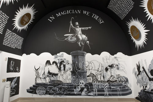 Sun Xun's work plies the uncontested surface of politicized truth. By tying together the tenets of academic drawing with political cartoons and projecting them into the realms of installation and film, he manifests his multifaceted imagistic world as improvisational theater. His broken narratives, peopled with pedagogues as magicians and infectious insects that plague the world, work on the viewer's emotional response to fear—fear of the unknown, of the undiscovered country that Shakespeare, Nixon, and each of us cower before. But it is the ambiguous era in which he sets his stories that further mystifies the viewer. Sun's world lies suspended in anonymous twentieth-century eternity, a past riddled with legacies of modernity at its most extreme, a film noir testimony to absolutism. His flickering images crystallize into a gritty, dystopic urban overture to revolution; it is the industrial revolution as much as it is the Cultural Revolution. But Sun's work, muddled in this overlapping and obsolete modernity, idles at the brink of revolution without spilling over. His aim is to scratch the surface of political history, a history continuously conflated into myth, in order to expose the past as being in a state of constant becoming. His vision is the pregnant pause of mythology in the making.