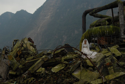 Sichuan Province experienced the worst earthquake in its history in May 2008. Only three months before the Beijing Olympics were scheduled to open, with China the focus of world attention, hundreds of thousands of people lost their lives, their loved ones, their homes. The severe sense of loss reverberated with Chen, whose most recent body of work reflects on life in Sichuan after the disaster. Peach Blossom (Tao Hua, 2009), on view for the first time in the United States at the Hammer Museum, was created in the same spirit as the earlier Wanxian video works—with an archival instinct and a lens on the personal, social, and environmental changes shaping people’s lives. In Chen’s words: "We cannot avoid natural disasters—life goes on. I made videos and performed in the areas hit by the earthquake as a commemoration and hope that more people will see how people are living in these areas and help them."2