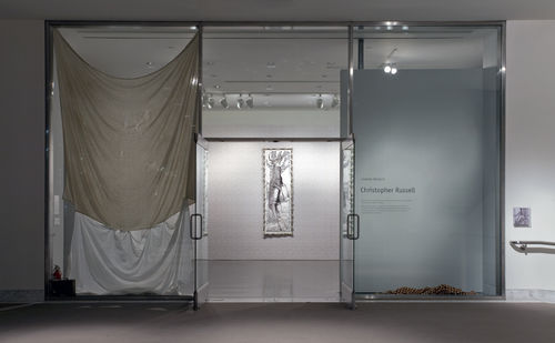 Los Angeles–based artist and writer Christopher Russell received his BFA from California College of the Arts and Crafts in San Francisco in 1998 and his MFA from Art Center College of Design, Pasadena, California, in 2004. From 2001 to 2005 Russell edited, designed, produced, and distributed the “destroy-to-enjoy” literary art zine Bedwetter. He has exhibited his work at Acuna Hansen, Los Angeles; White Columns, New York; Van Harrison Gallery (Gallery 1R), Chicago; and other venues. Landscape, a monograph on his work, was published in 2007 by Kolapsomal Press. Russell edited and wrote an essay for the catalog that accompanied his curatorial debut, Against the Grain at Los Angeles Contemporary Exhibitions in 2008. Additionally, he has written more than two dozen articles and reviews about art in Los Angeles. A version of this installation will appear in book form later this spring through 2nd Cannons Publications. Russell’s work is in various public collections, including the Getty Research Institute; New York University; the Museum of Contemporary Art, Chicago; and the Museum of Contemporary Art, Los Angeles. This is his first solo museum exhibition.