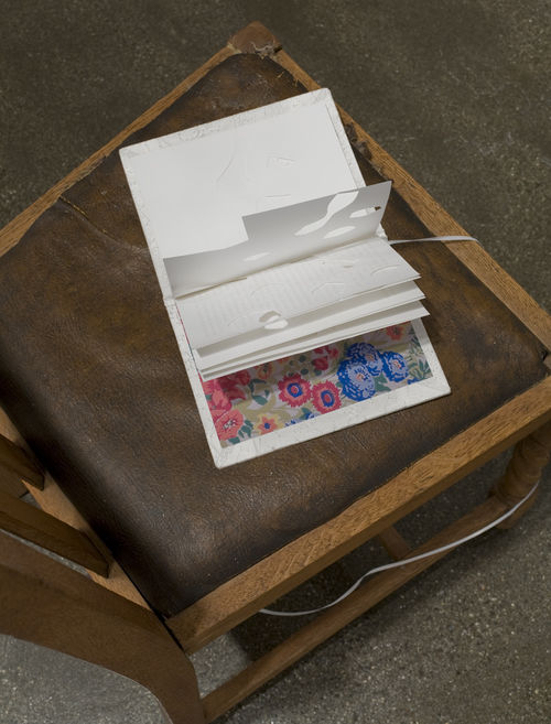 Steeped in historical references, Russell’s novella Budget Decadence seamlessly fuses writing and object making to create an all-encompassing environment that challenges the traditional divide between the two practices and expands the very idea of what a book is. To stand in his Hammer Project installation is to stand, literally, in the novella.