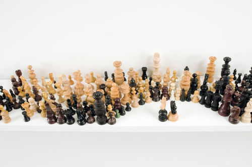 In viewing Hess’s oeuvre, one begins to realize the intransience of his work: the artworks cannot be moved without, in a sense, being destroyed. They are not discrete and portable art objects that may be resituated into a variety of locations or contexts. On occasion, however, he has transformed his drawing-installations into sculptures: the tape is taken off the wall and made into a sculptural object (he balls up the tape remnants), which he calls implosions; the drawing-installation collapses inward even as meaning multiplies outward. Indeed, a transformation takes place, as opposed to transportation. Like the lines that cover the wall, often converging into recognizable images, we, the viewers, are inspired to follow a line of flight.