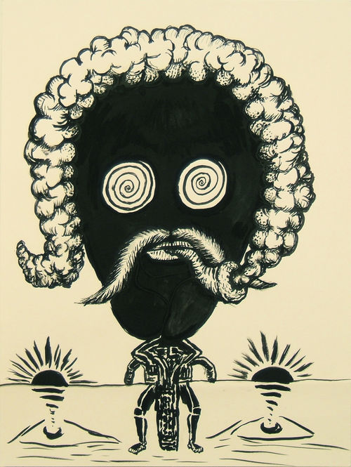 Charles Irvin makes videos, drawings, and paintings depicting a bizarre universe populated with comedians, creeps, aliens, and wizards. In addition to drawings and paintings, Irvin presents a new video, in the style of conspiracy theory documentaries, exploring the origins and agenda of the False Memory Syndrome Foundation, a support group for individuals who claim to have been falsely accused of perpetrating child sexual abuse.