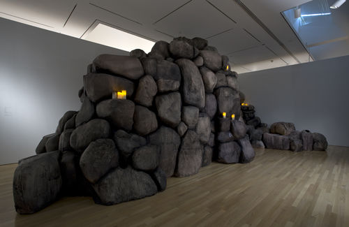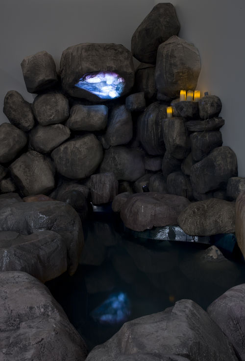 Kaari Upson is creating a new installation which re-imagines the grotto at the Playboy mansion with video projections and a running waterfall. It is a continuation of the ongoing Larry Project, which investigates the life and identity of a stranger whose personal items Upson discovered in an abandoned burned out home in 2005. First shown as a Hammer Project in 2007, this body of work confronts ideas about identity and privacy as Upson explores a bizarre fantasy life with this stranger whose biography she has become absorbed with.