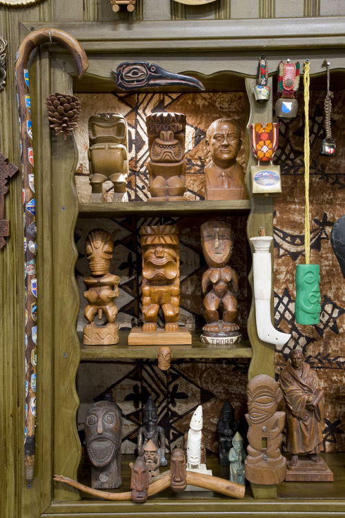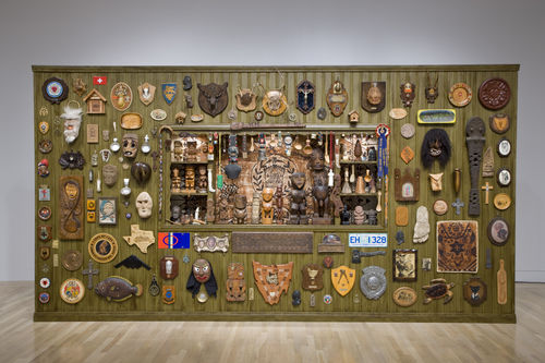 Jeffrey Vallance is a collector of objects from all over the world and is often described as an amateur anthropologist. However, unlike most anthropological studies, Vallance’s work zeros in on the overlooked treasures of everyday life. He takes kitschy and seemingly banal objects and ideas and transforms them into humorous works of art. For this exhibition, Vallance presents one of his many object collections which is displayed on a replica of a wall from his home.