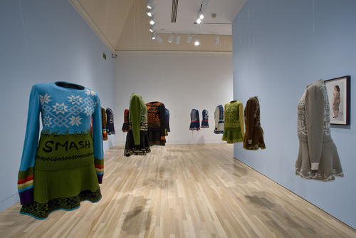 Lisa Anne Auerbach’s artistic practice is multi-faceted—she is a writer, a passionate advocate of bicycling, a knitter, a photographer, and a political activist. Auerbach has co-opted the traditional female craft of knitting and transformed it into a tool for wry, pointed political messages. Her contribution to the exhibition includes sweaters with hand-knit political jokes and riddles, as well as ‘cover girl’ self-portrait photographs featuring the artist in deadpan poses revealing the artist’s sly sense of humor.