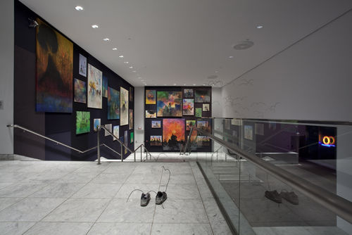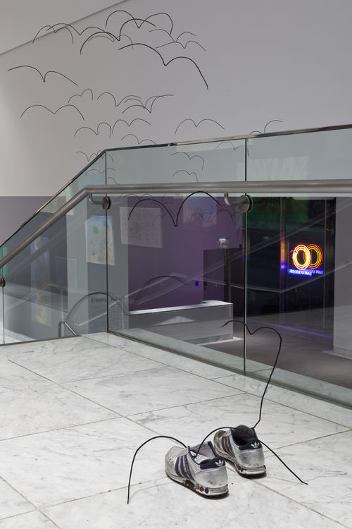 Like a favorite poem, Friedrich Kunath's works poignantly yet playfully distill the fundamentals of human emotion—desire, loneliness, and anxiety—creating comically tragic scenes in which human beings try to find their way in the world. Employing an impressive range of mediums—drawing, painting, sculpture, installation, photography, and a neon sign—Kunath will cover the lobby walls, creating a world both fantastical and quotidian revolving around a number of middle aged male characters struggling to define their lives in a sea of uncertainty.