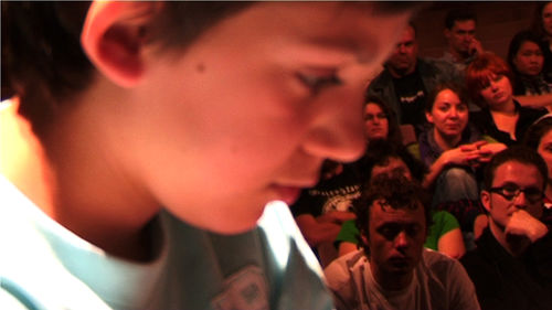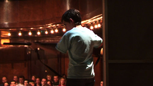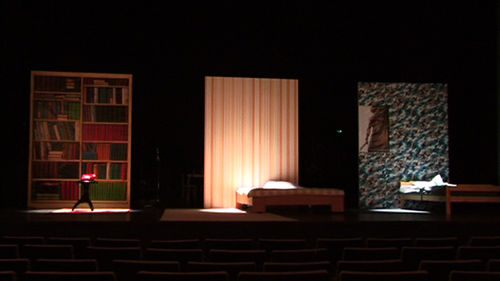 In the most recent work on view here, an untitled film made for the 2009 Venice Biennale, Cytter used both professional and untrained actors and shot the action at the Hebbel am Ufer theater in Berlin in front of a live audience. Taking as its inspiration John Cassavetes’s movie Opening Night (1977), the film centers on a woman preparing to go on stage as she confronts her own life, highlighting the role-playing that accompanies the construction of identity, whether actual or fictional. The artist’s turn to the theater intentionally brings the typically hidden backstage into the picture, and the uncertainty surrounding the various characters and their situation is more pronounced than in Cytter’s previous works. The inclusion of shots of the audience watching the production adds another layer to the experience of viewing—we are watching them watch the actors, putting into sharp relief the spatial and temporal displacement enacted by the museum context of the video projection in the black box. We are further removed but somehow are granted more insight into the machinations of what is occurring in the work. With the moving-image medium, multiple viewpoints are provided, and we almost feel as if we are moving around the stage with the actors, rather than remaining politely and passively seated like the audience members in the theater.