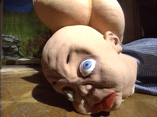 Since 1987 Los Angeles–based artists Mike Kelley (b. 1954 in Detroit) and Paul McCarthy (b. 1945 in Salt Lake City) have collaborated on a number of videos, installations, and sound projects in addition to pursuing their individual work. Both artists are known for their complex and occasionally disturbing works that criticize mass culture’s perpetual reinforcement of authoritarian power structures. Heidi (1992) is based on Johanna Spyri’s 1880 children’s novel Heidi's Years of Wandering and Learning. Popularly known as Heidi, the novel presents parallel dichotomous relationships between nature and culture, the country and the city, and health and sickness through the story of the young Heidi’s adventures. Both a parody and a critique, the video was taped on an elaborate set that was later presented as part of a large-scale installation titled Heidi: Midlife Crisis Trauma Center and Negative Media-Engram Abreaction Release Zone (1992). The epic sculpture included rubber figures and body parts, backdrop paintings, and various props used in the making of the video, as well as the video itself. Kelley and McCarthy employed horror film conventions in their video adaptation of the classic story to emphasize the creepier aspects of the dualistic worldview that it espouses. Subverting the tale’s morality codes to the extreme, the artists explore the intellectually and sexually repressive social hierarchies outlined in the original story and extend Spyri’s oppositional pairings to encompass modernism and popular culture and the split nature of their own artistic collaboration.