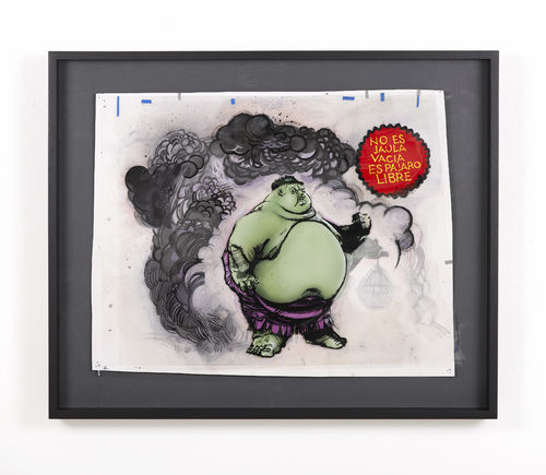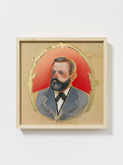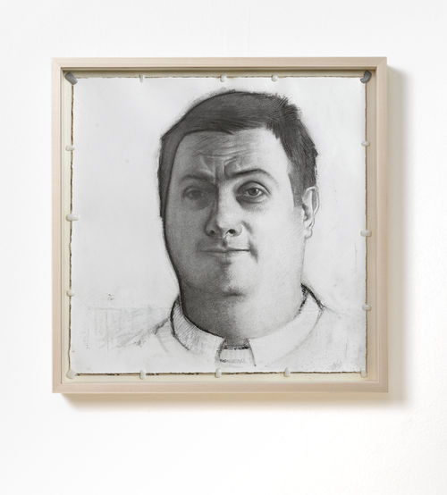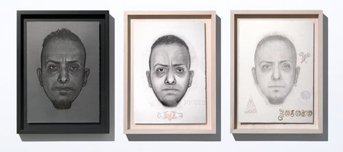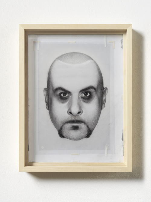 Italian artist Roberto Cuoghi makes videos, sculpture, paintings, and drawings, in a variety of unconventional media, which expand on the possibilities for transformation and question our understanding of identity. For his most legendary work, the artist, at the time a pierced punk, decided to followed his father’s daily routine of eating, dressing and working, and eventually came to resemble the middle-aged man. He created a monumental sculpture after a tiny bronze statue from the collection of the Louvre, of an Assyrian deity Pazuzu, king of the demons of the wind. He hand-crafted a number of ancient musical instruments, which he then used in a musical accompaniment to his own singing of a lamentation from 612 b.c. invoking the protection of the Assyrian gods. For his Hammer Projects exhibition, his first solo show in the U.S., Cuoghi presents a new series of self-portraits depicting the artist in a variety of personae, as if he had traveled down a different path in life, along with a black Carrara marble sculpture of the demon god Pazuzu.
