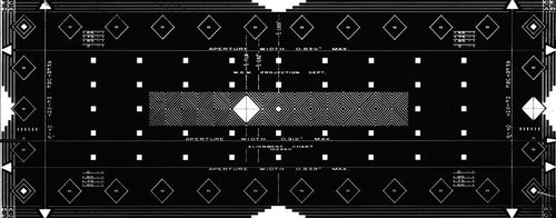 Although their aesthetic qualities are incidental, the test patterns are strangely beautiful and formally sophisticated. Reducing the medium of film to its elemental components, the test patterns are like textbook examples of the tenets of modernism. Like all formalist compositions, their insistence on self-reference yields an interrogation of the viewer. Although their aesthetic qualities are incidental, the test patterns are strangely beautiful and formally sophisticated. Despite their clinical appearance and their regularity and purposiveness, their esoteric numerals make them seem mystical or magical. With their radiating diamond shapes, squares, triangles, and concentric circles, some bear a resemblance to mandala designs, possessing a psychedelic or even hypnotic quality. Of course, their mystery derives not from anything metaphysical but simply from an arcane world of pictorial encryption particular to projection booths. Regardless, the test patterns achieve a type of abstraction, however unintentionally, that offers up a host of associations.