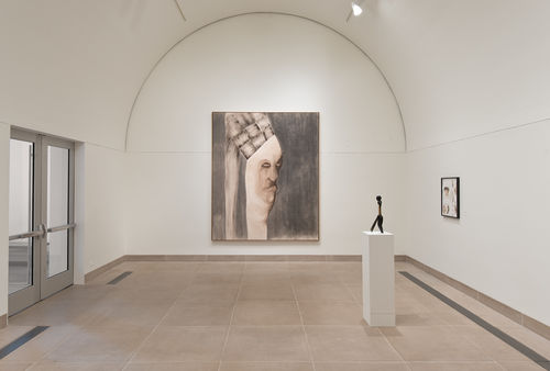 The small space at the Hammer Museum known as the Vault Gallery is an appropriate setting for Enrico David’s mutable figures and forms. It was designed to house a rare manuscript by Leonardo da Vinci, which was unofficially named the Hammer Codex after the museum’s founder acquired this Renaissance work in 1980 (1). The gallery’s arched walls and cavernous quality are now ghostly reminders of its original function, yet the room is like a deconsecrated chapel that continues to tease the imaginations of artists and curators (2). The architectural memory of the space, as well as the eerie absence of the object that it was conceived for, make it particularly compatible with David’s investigation of the theme of passing.