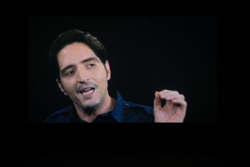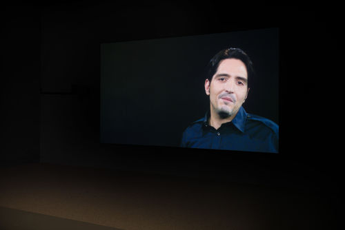 "What's it like to be an alias?" asks the actor in Mario Garcia Torres's one-act monologue titled I Am Not a Flopper (2014). "I'm going to tell you," he continues, as an ensemble of four cameras trace his movements and anticipate his steps over the course of the nearly thirty-minute performance. Based on a live performance that the artist staged in 2007, the video—a documentary approximation of a script coauthored by Aaron Schuster and the Mexico City–based artist and reminiscent of a motivational speech, public-access infomercial, or TED talk—was taped in the television studios of KCET in Burbank. The actor David Dastmalchian, a typecast player of "bad guys," performs the role of Smithee. Appearing to deviate from the script at various moments, he reveals the constructs of this scenario—he was, after all, hired by the artist even though he states that he is "not a front man for Mr. Garcia Torres." He is grateful to the Hammer Museum, but "his opinions don't necessarily express those of his presenters." It's something of an ambiguous role full of doubt and contradiction. Smithee is a text; his words are fed to him by a teleprompter, but his delivery is at times self-aware, as if the persona that he is condemned to inhabit might be overcome by the performer's clever sleight of hand and agency. Though we are led to believe that Dastmalchian is breaking character, he is always staying close to the script.
