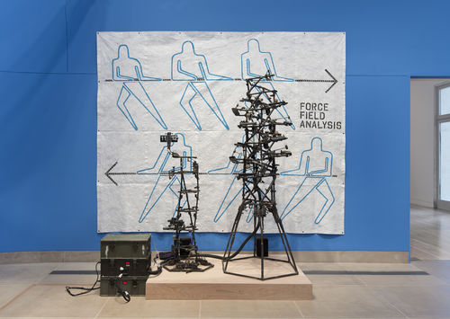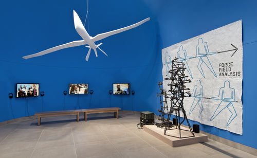 Mexican artist Pedro Reyes’s project The People’s United Nations (pUN) is both an exhibition and an event that puts the diplomatic and global problem-solving goals of the United Nations in the hands of ordinary people. Originally staged at the Queens Museum of Art, Reyes’s Hammer Project will include a group of sculptures—including Drone Dove and Colloquium—and several paintings on Tyvek that graphically portray political, social, and environmental issues being faced by our world today. The works reflect the underlying goals of peace and dialogue proposed by the project.