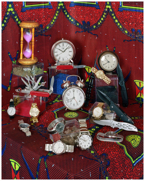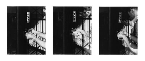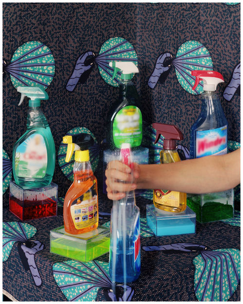 Pinsky carefully constructs her photographs through a variety of methods—building assemblages of items, initiating formal experiments, and manipulating in different ways. For instance, some series feature composites—two different photographs layered on top of each other. The layering of the photographs creates an effect that simulates the passage of time, which is jarring against subject matter that takes cues from product photography as well as mass produced instruction manuals. Pinsky’s subjects—men picking locks or mundane objects standing against brightly colored prints—paired with her use of time and nonlinear sequencing , upend the viewer’s expectations about cohesion and narrative progression within photography.
