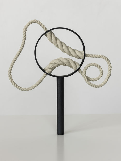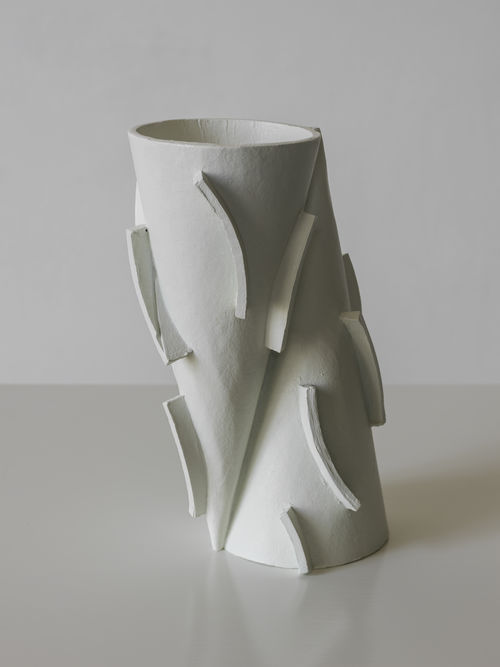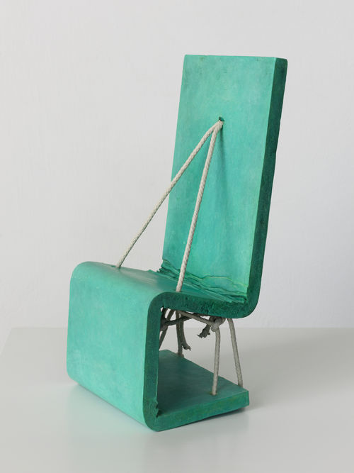 In these works, each object’s multiple views are pulled tightly together into abstraction, becoming a deliberately un-grand piece suited for tabletop or pedestal display. His borrowed forms, ranging from modernist vases to riffs on Picasso’s guitars, comfortably flaunt their mundane construction.