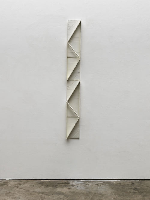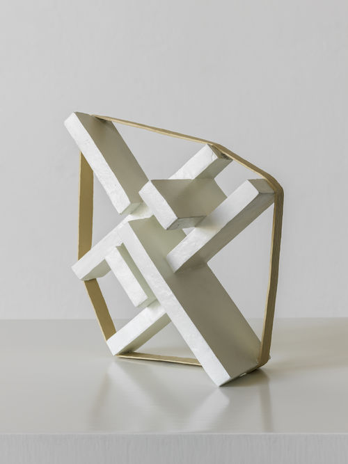 While the bronzes’ smaller scale applies more pressure to formal decisions such as color and shape, ultimately, the practice allows for more play: with the discarded cardboard, Swallow can build quickly, folding and gluing to construct simple forms or vignettes. Despite the artist’s varied process, these works demonstrate a willful slowness, overriding modernism’s inherent velocity with their individual, residual histories.